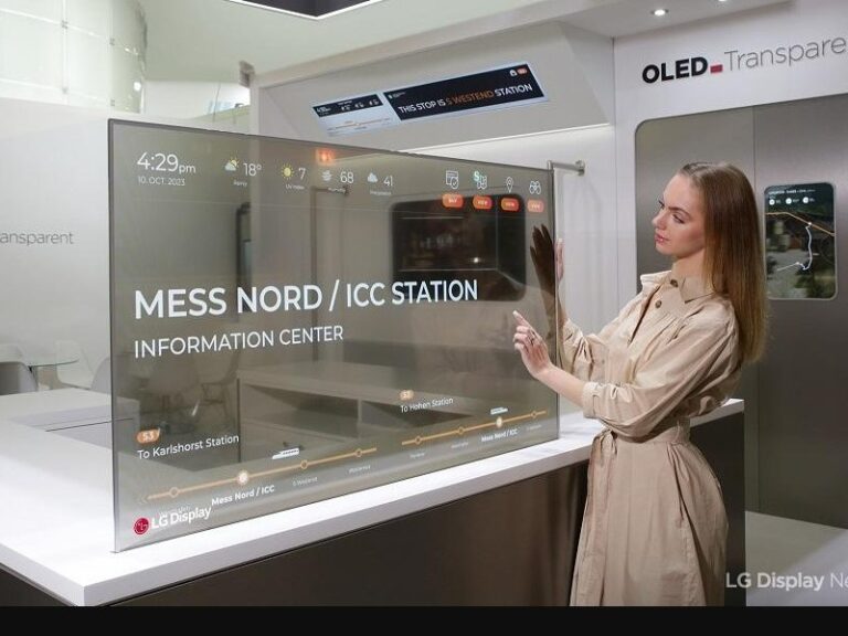 Unlike conventional LED video walls that rely on opaque panels, LG’s transparent mesh uses micro-LED nodes embedded in a lattice structure. This creates a screen effect that appears solid at a distance, while remaining largely see-through at close range.